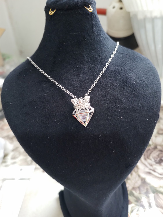گردنبند استیل رنگ ثابت به شکل تاج در قسمت هرمی گردنبند یک نگین شیشه ای بی رنگ وجود دارد،تاج نماد زیبایی و جذابیت زنانه است این گردنبند ضد حساسیت ومناسب استفاده روزمره میباشد